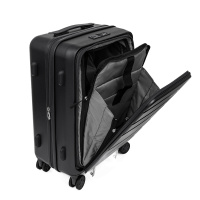 Компактный чемодан с вертикальной загрузкой FABRETTI с возможностью увеличения объема, размер: 56*38*25 (30 с расширением). Модель в оттенке черный металлик выполнена из литого 100% поликарбоната - современного материала, который с равным успехом переносит морозы и жару. Ударопрочная формула защищает аксессуар от механических повреждений. Просторное отделение оснащено эластичными ремнями-фиксаторами. Предусмотрен вместительный внешний карман на молнии со стильными брендированными поводками. Внутри карман-сетка на молнии, открытый карман и секция с хлястиком на липучке - для гаджетов. Ограничители на молнии позволяют фиксировать крышку в нужном положении. Швы спрятаны под гибкие пластиковые канты. Выдвижная ручка из авиационного алюминия фиксируется в 3-х положениях. Надежные встроенные верхняя и боковая ручки позволяют комфортно переносить чемодан. Боковые ножки обеспечивают устойчивое положение чемодана при постановке на бок. 4 двойных колеса из износостойкого каучука бесшумно вращаются на 360°.