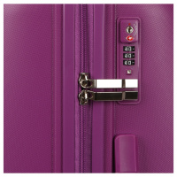 Компактный чемодан FABRETTI в насыщенном фиолетовом оттенке выполнен из полипропилена - современного материала, для которого характерны высокая ударопрочность, стойкость к перепадам температур, отличная износостойкость. Внутри 2 отделения: одно - с эластичными ремнями-фиксаторами, другое - с тканевой перегородкой на молнии и вместительным карманом-сеткой на молнии. Выдвижная ручка фиксируется в 3-х положениях. Сверху предусмотрена дополнительная ручка для удобства переноски. 4 двойных колеса вращаются на 360°, позволяя чемодану двигаться легко и плавно, что уменьшает нагрузку на руки и спину. Чемодан оснащен кодовым замком TSA, который обеспечивает беспрепятственный досмотр багажа в случае необходимости.