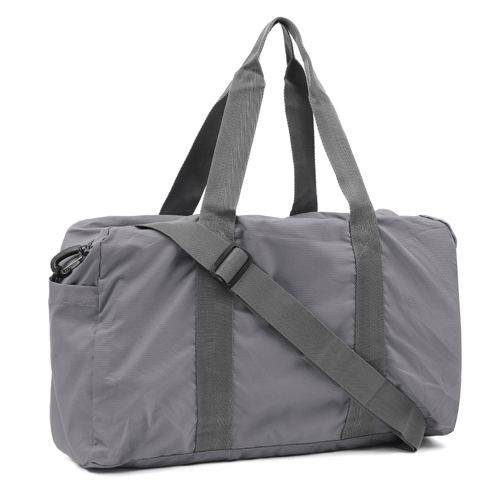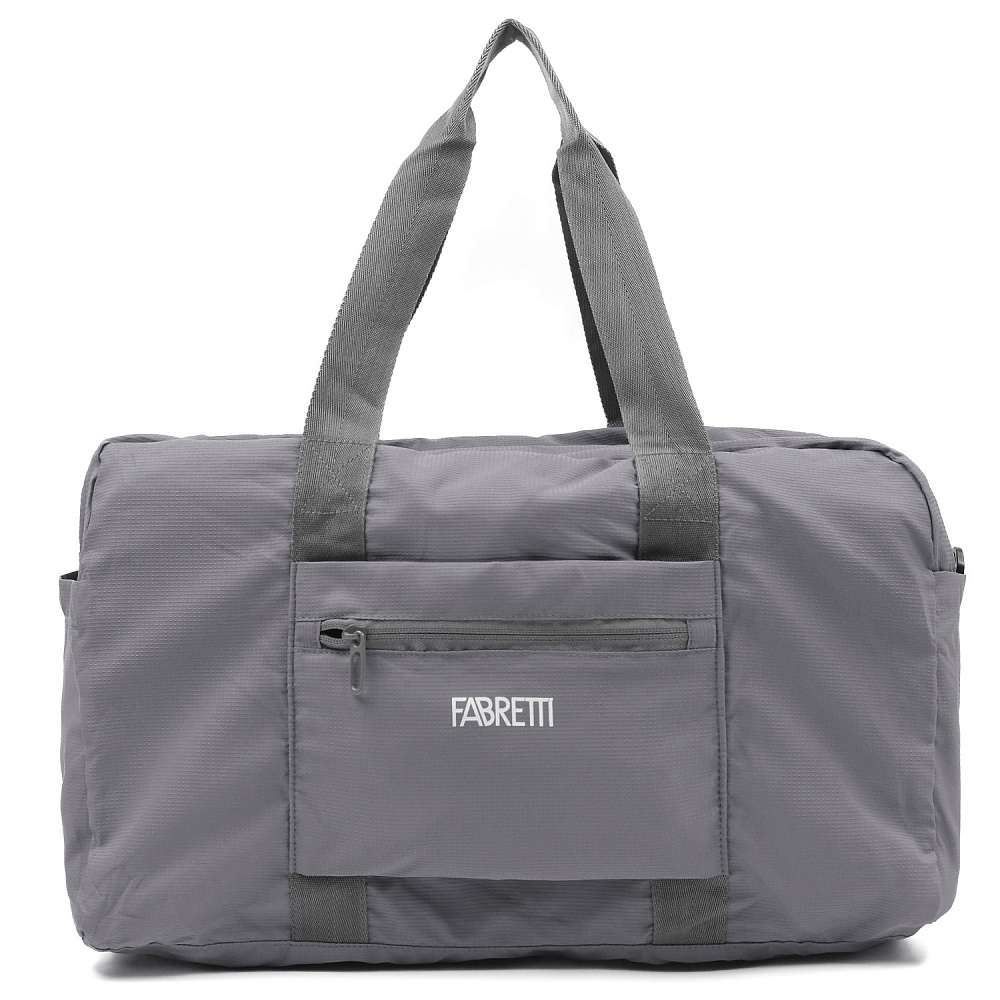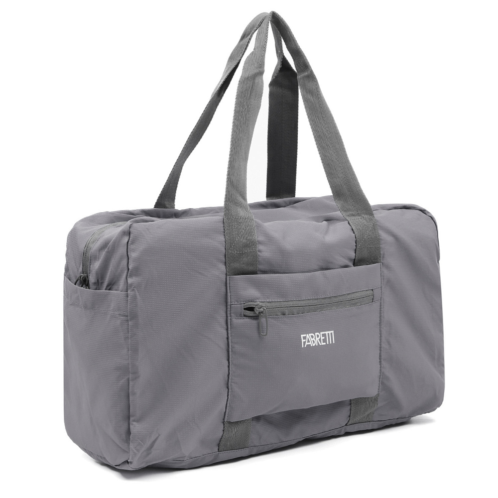 Складная текстильная сумка FABRETTI - незаменимый аксессуар для путешествий. Модель в сером оттенке выполнена из влагостойкого высокотехнологичного полиэстера, практичного и легкого в уходе. Сумка разворачивается в достаточно вместительный аксессуар с отделением на влагозащитной молнии с 2 бегунками. Внутри 1 боковой карман на молнии. На лицевой стороне предусмотрена лента для крепления сумки на чемодане, карман быстрого доступа на молнии и 2 открытых кармана по бокам. Модель имеет прочные удобные ручки. В комплект входит съемный плечевой ремень, который регулируется по длине. Размер в сложенном виде: 15*16*4 см.