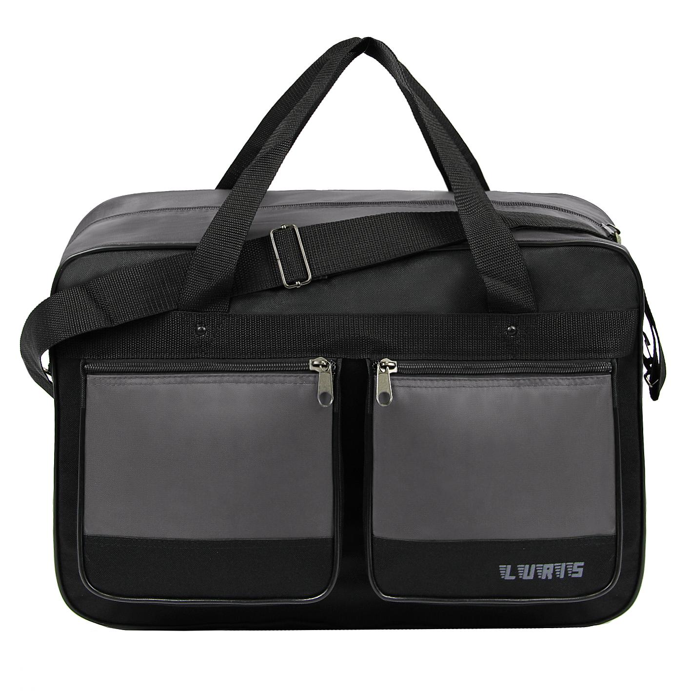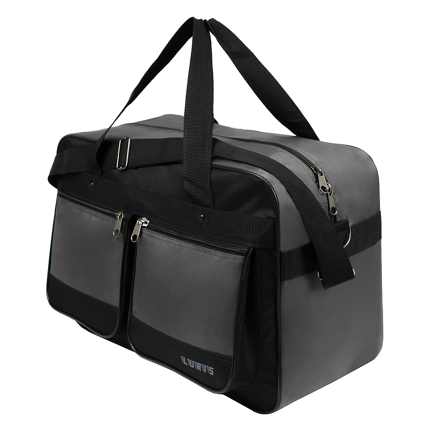 Дорожно-спортивная сумка средних размеров предназначена для транспортировки личных вещей. Сумка изготовлена из прочной водоотталкивающей ткани. Имеется одно объёмное отделение, два кармана на передней стенке на молнии. Внутренние швы не окантованы, фурнитура простая металлическая. Ручки укреплены хольнитенами. В комплект входит съёмный регулируемый ремень.