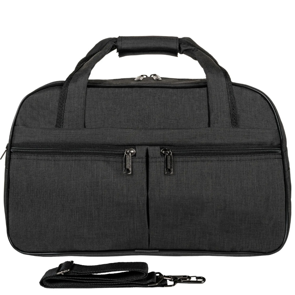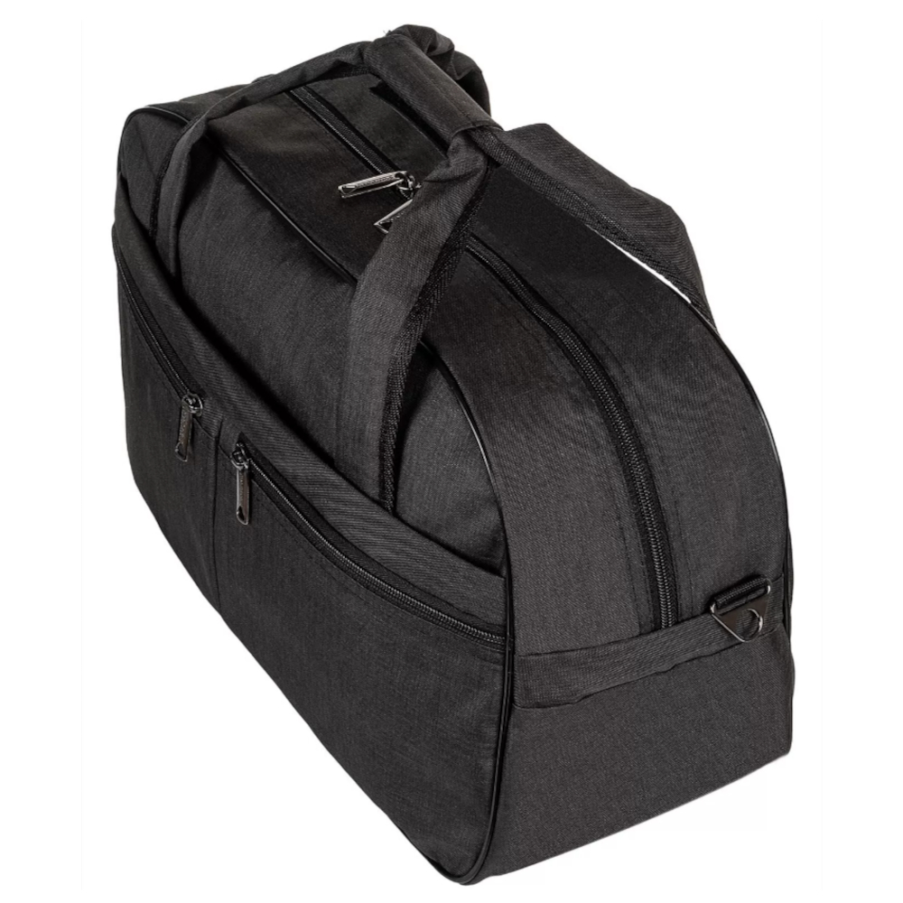 Саквояж «Continent» подходит как для мужчин, так и для женщин. Брендированная подкладка. есть съемный ремень для ношения сумки через плечо. Отличная вместительность позволяет брать с собой всё необходимое для похода в фитнес-клуб, в бассейн, в тренажерный зал. А для поездки на пару дней она будет незаменима в качестве ручной клади. Основное отделение на молнии, открывающиеся с двух сторон. Спереди два кармана на молнии. Внутри саквояжа есть карман для телефона и аксессуаров на молнии. Карман на молнии с тыльной части сумки позволяет зафиксировать саквояж на ручке чемодана.