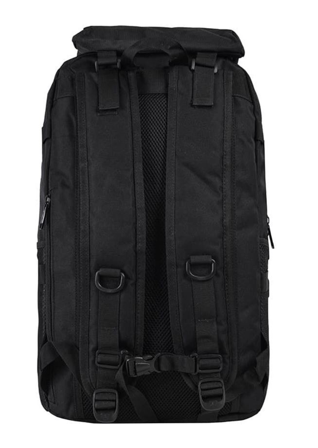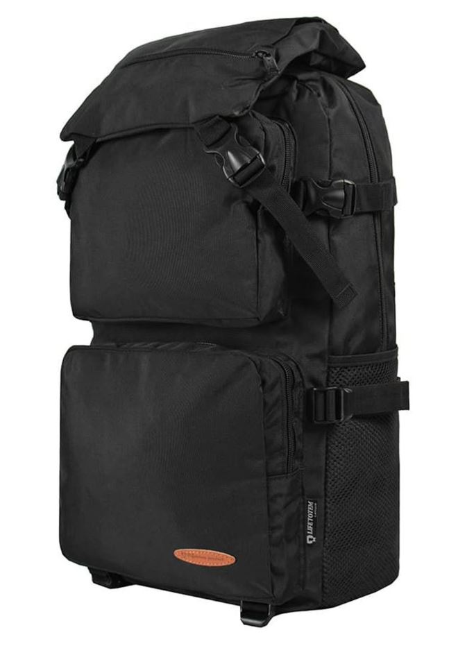 Туристический рюкзак для небольших путешествий, изготовленный из плотной ткани. Вместительное основное отделение на молнии, подкладка из гладкого нейлона, карман для ноутбука на липучке, внутренний карман на молнии, два дополнительных отделения на молнии в передней части, два боковых сетчатых кармана, крышка-клапан на застёжках "фастекс", карман на молнии на крышке, стропы-утяжки по бокам и в нижней части для регулирования объема и дополнительных креплений, стропа-перемычка между лямками, мягкие лямки и спинка с сеточкой, ручка для переноски.