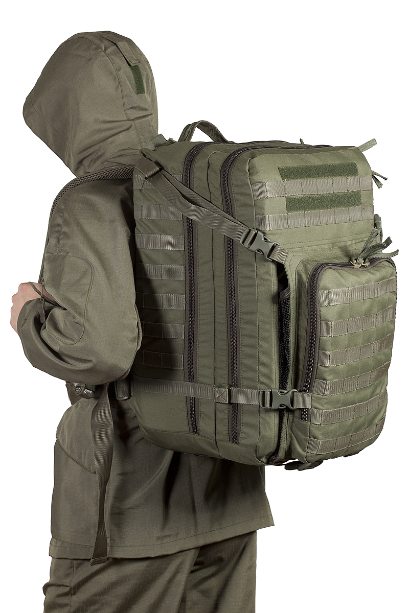 Объёмный фронтальный карман-книжка на фастексах и на молнии со стропами для внешней подвески