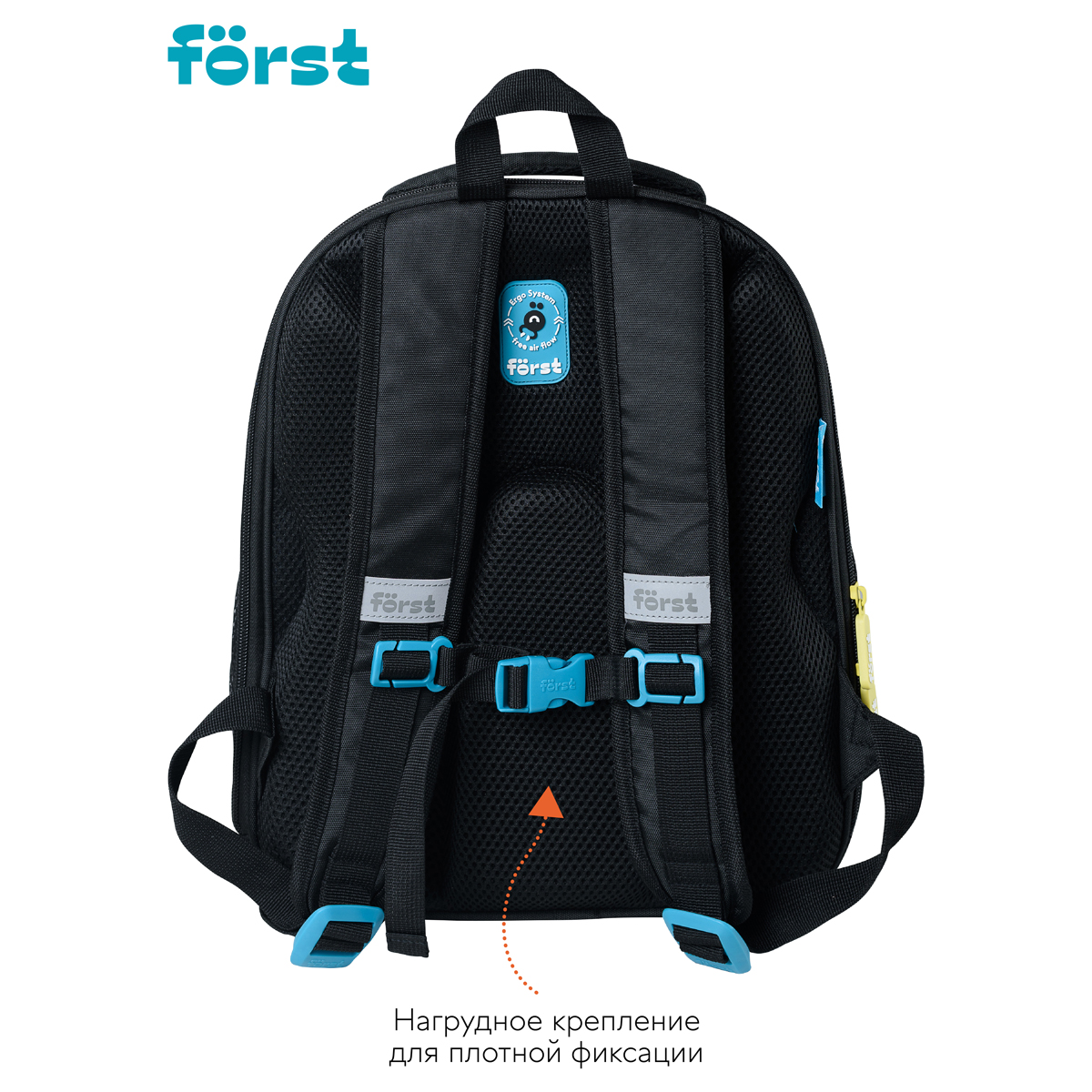 Нагрудное крепление обеспечивает плотную фиксацию ранца и не дает лямкам спадать с плеч во время движения.
