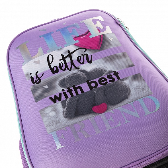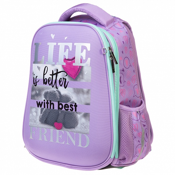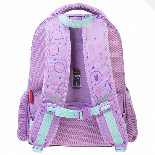 Выполнен из современного пористого EVA материала с покрытием из высококачественного полиэстера. Анатомическая вентилируемая спинка, лямки, регулируемые по высоте, в зависимости от роста ребенка, уплотненная мягкая ручка и петля для подвешивания делают его удобным. Нагрудная стяжка позволит плотно закрепить ранец на спине школьника. Одно вместительное отделение на молнии с плавающей перегородкой на липучке. Внутри расположен функциональный органайзер, включающий в себя два кармана на молнии для мелочей и мобильного телефона. Для удобства на задней спинке предусмотрен потайной карман на молнии для ценных вещей. На боковинах - удобные вместительные карманы. Дно ранца выполнено из ПВХ и дополнительно оснащено пластиковыми ножками. Светоотражающие элементы на лямках, передней и боковой частях ранца.