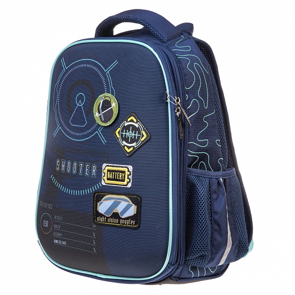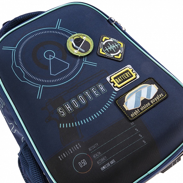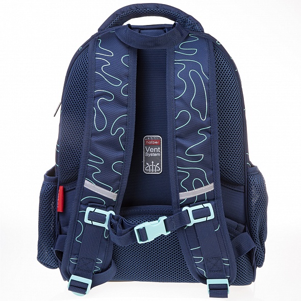 Выполнен из современного пористого EVA материала с покрытием из высококачественного полиэстера. Анатомическая вентилируемая спинка, лямки, регулируемые по высоте, в зависимости от роста ребенка, уплотненная мягкая ручка и петля для подвешивания делают его удобным. Нагрудная стяжка позволит плотно закрепить ранец на спине школьника. Одно вместительное отделение на молнии с плавающей перегородкой на липучке. Внутри расположен функциональный органайзер, включающий в себя два кармана на молнии для мелочей и мобильного телефона. Для удобства на задней спинке предусмотрен потайной карман на молнии для ценных вещей. На боковинах - удобные вместительные карманы. Дно ранца выполнено из ПВХ и дополнительно оснащено пластиковыми ножками. Светоотражающие элементы на лямках, передней и боковой частях ранца.