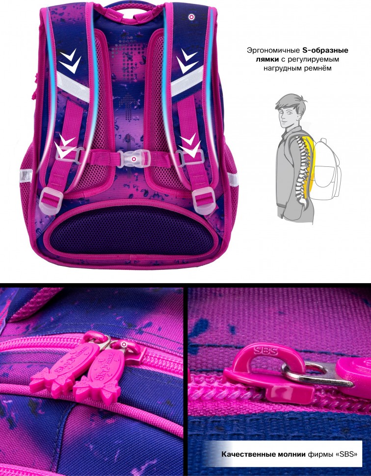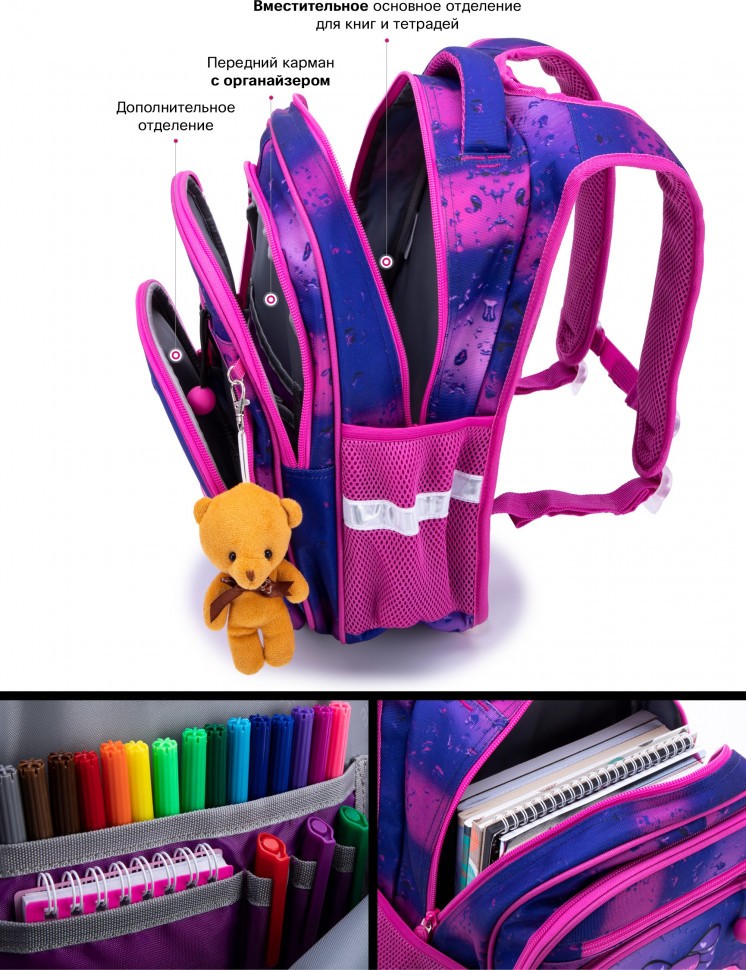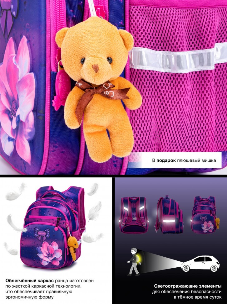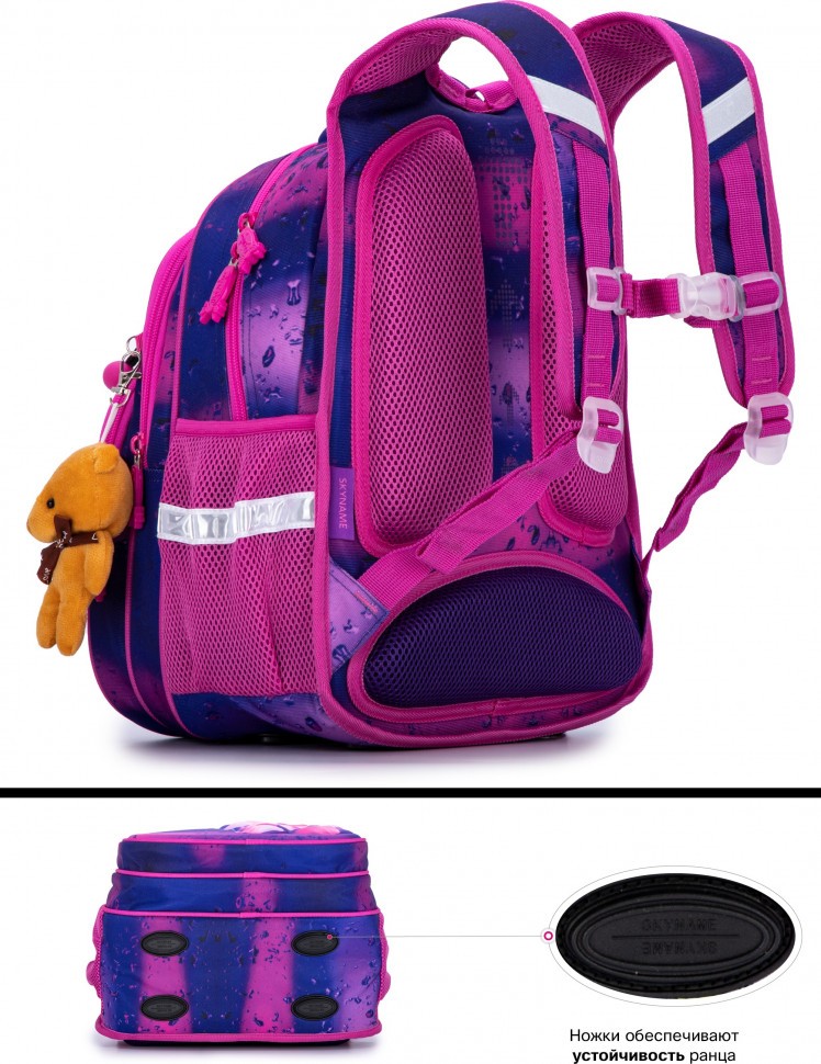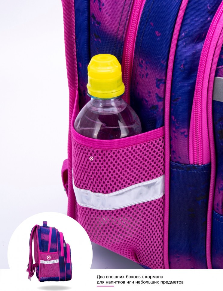 Светоотражающие элементы расположены на передней, задней и боковой частях рюкзака, для обеспечения безопасности в темное время суток.