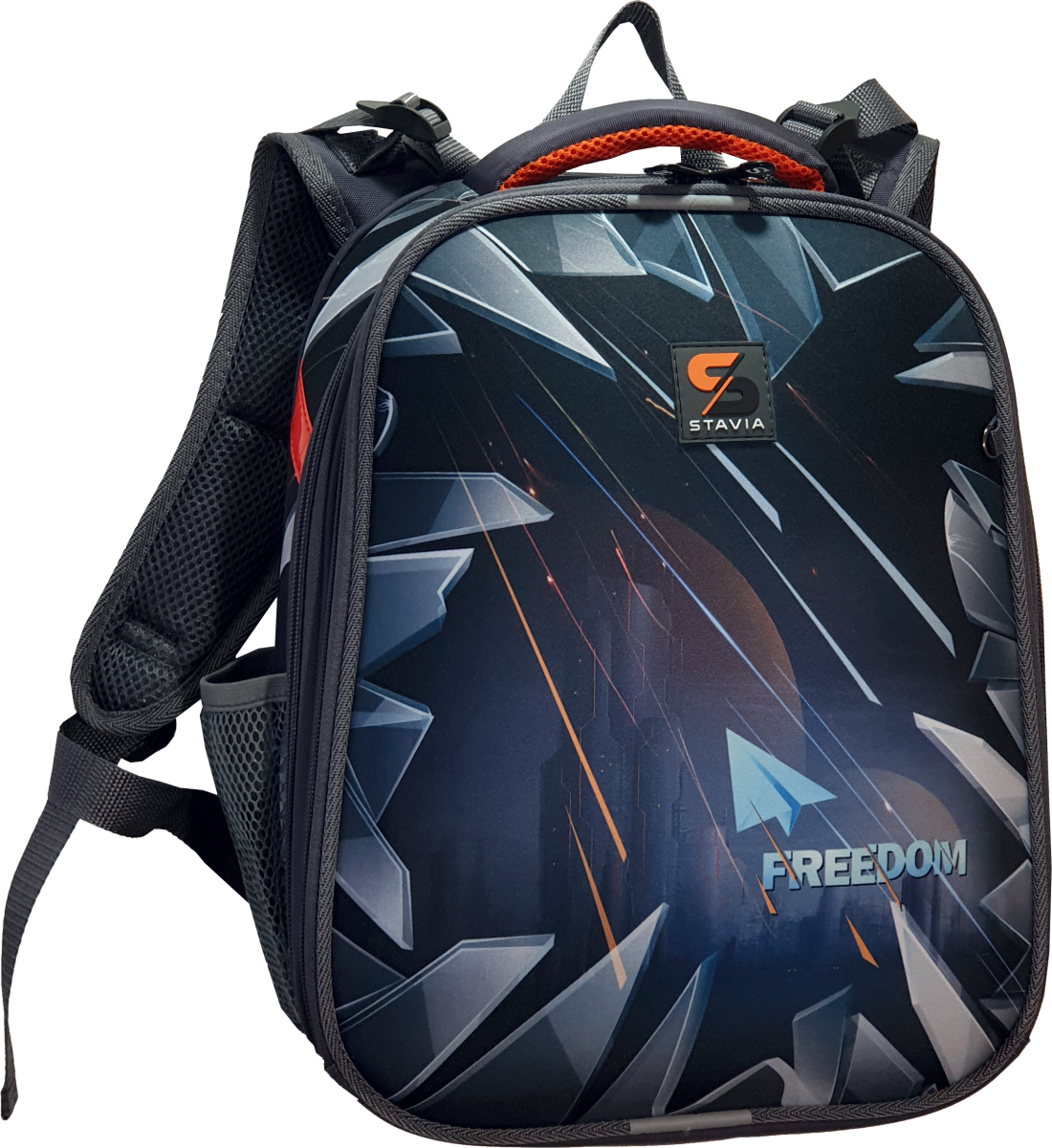 Прочные формованные стенки и дно ранца позволяют надежно защитить содержимое от влаги, загрязнений и предотвращают его замятие.