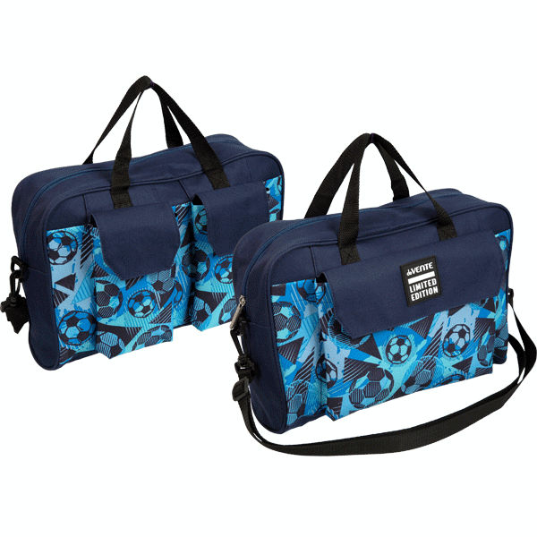 Сумка для дополнительных занятий "deVENTE. Ergo. Football" A4+ (35x28x10 см) текстильная, с подкладом, 1 отделение на молнии, 1 передний карман на липучке, 2 задних кармана на липучке, с 2-мя ручками и ремнем.