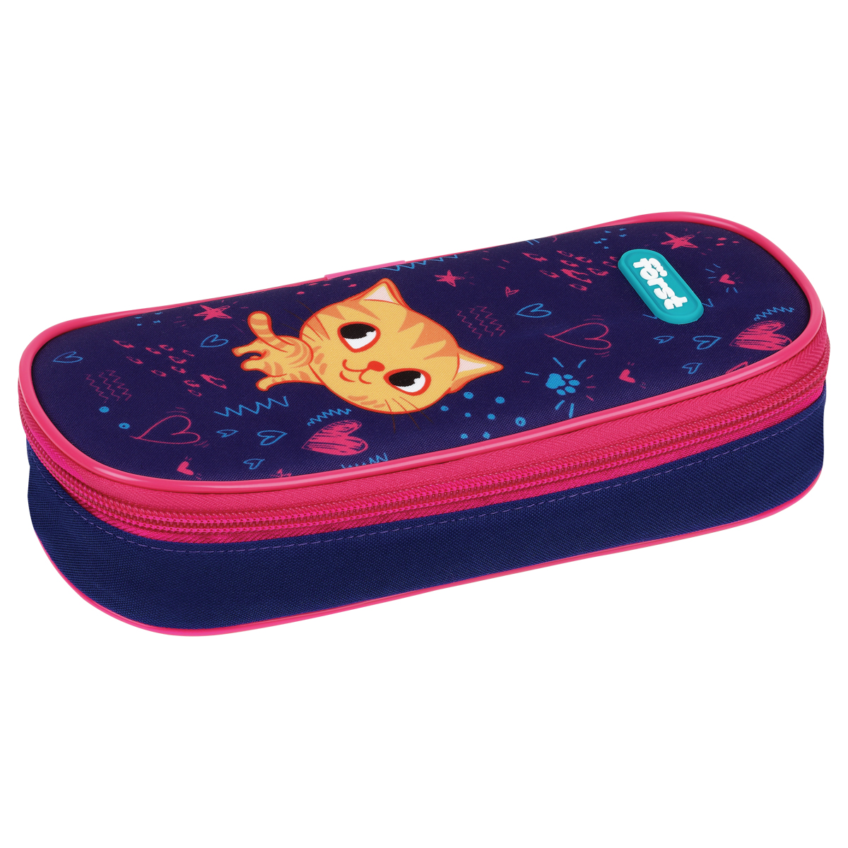 Пенал-футляр корпусный с 1 отделением. Материал лицевой поверхности и подкладки - полиэстер. На верхней откидной крышке расположены крепления-резиночки для канцелярских принадлежностей. Застежка - молния. Поставляется без наполнения.