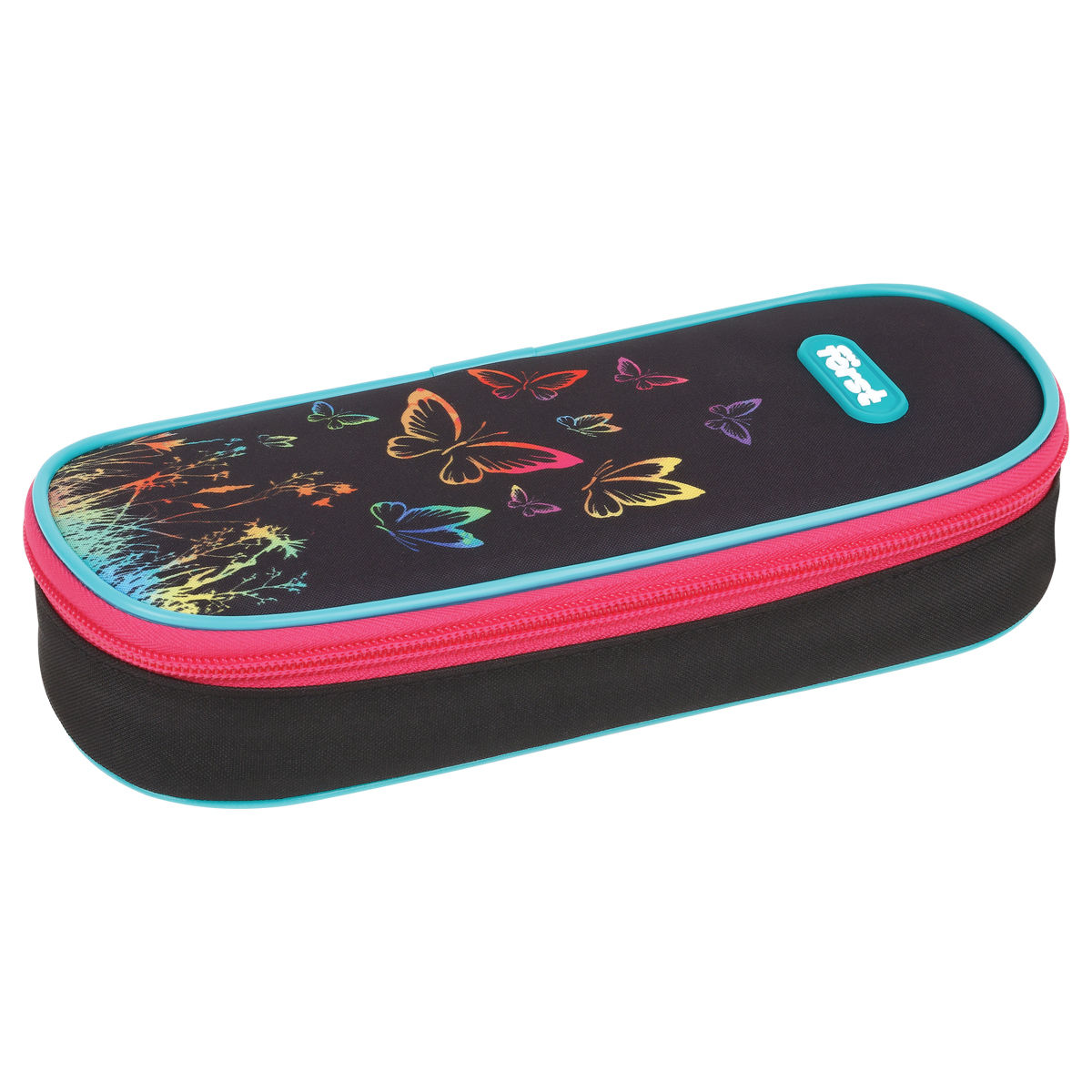 Пенал-футляр корпусный с 1 отделением. Материал лицевой поверхности и подкладки - полиэстер. На верхней откидной крышке расположены крепления-резиночки для канцелярских принадлежностей. Застежка - молния. Поставляется без наполнения.