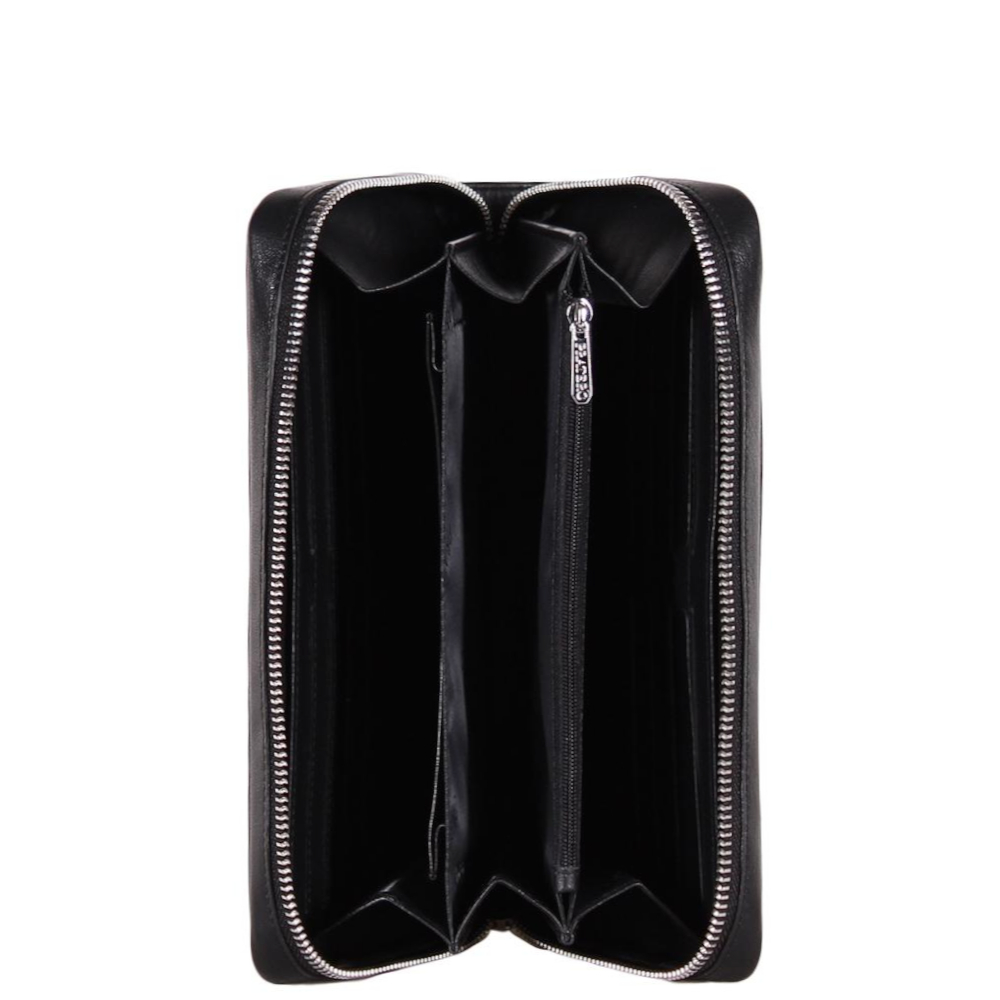 Внутри четыре отдела для карт, три открытых отдела и один на молнии.