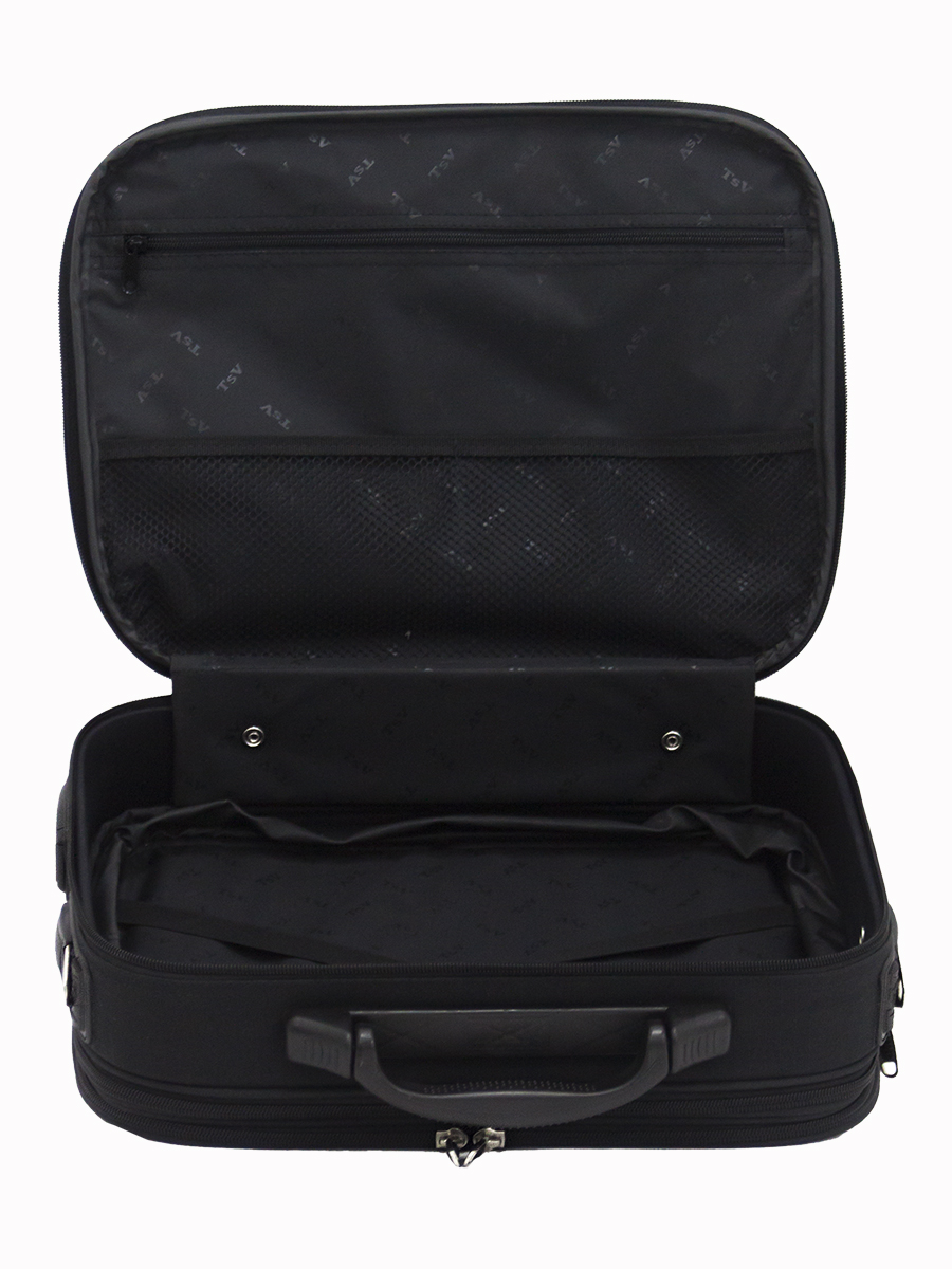 Престижная модель кейса, сочетающая в себе компактный размер и большое количество карманов. Кейс оснащен плечевым ремнем, а также эргономичной рукоятью для ручной транспортировки. Вся пластмассовая и стальная фурнитура эксклюзивна и изготовлена на собственном оборудовании, что является гарантией долговечности и надежной эксплуатации. Данная модель оснащена функциональным раскладом, увеличивающим объем кейса.