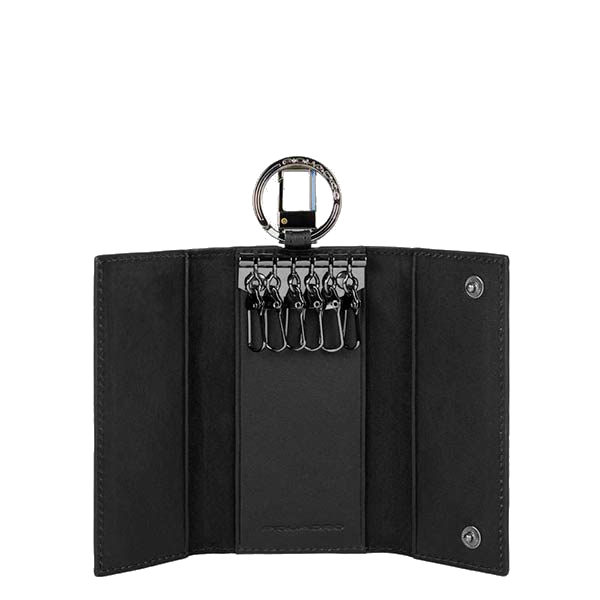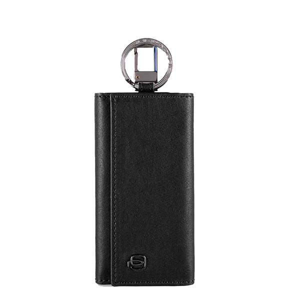 Ключница из популярной коллекции Piquadro Black Square. Выполнена из структурной телячьей кожи с черненой фурнитурой. Подходит для 6 длинных и коротких ключей, закрывается на кнопки.