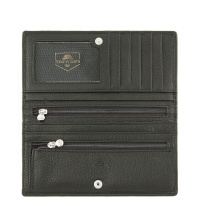 Закрывается на застёжку-кнопку. Модель имеет удобную горизонтальную форму. В кошельке имеется отделение для монет. Имеет четыре отделения для купюр. Также имеет 8 отсеков под визитки/кредитки.