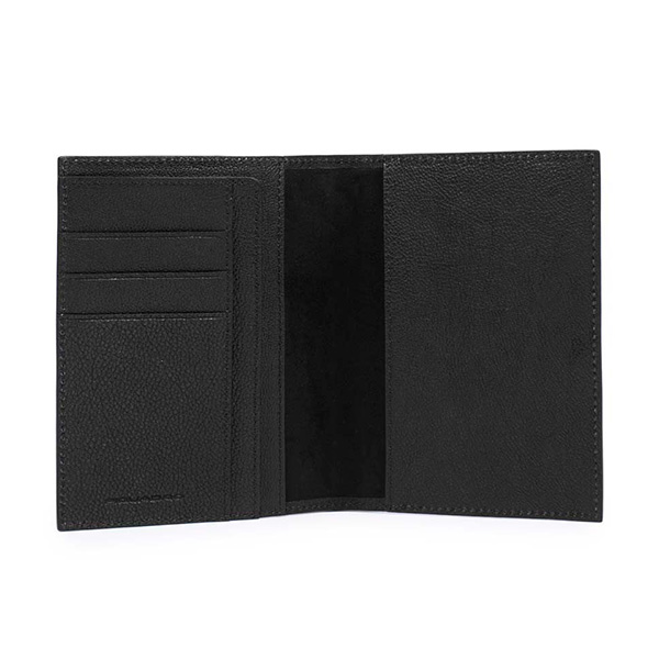 Черная кожаная обложка для паспорта из флагманской коллекции Piquadro Black Square. Имеет отделения для кредитных карт. Обложка изготовлена из высококачественной структурной телячьей кожи с черным кантом и темной подкладкой. Станет прекрасным дополнением к сумке или другим аксессуарам коллекции Piquadro Black Square.