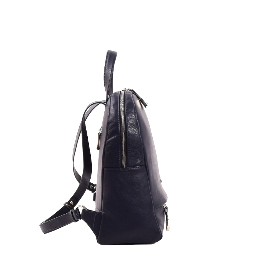 Рюкзак женский «Маттиоли» из натуральной кожи. Классическая округлая форма, закрывается на молнию. Внутри основного отделения карман на молнии и отсек для телефона, снаружи на лицевой и задней стенке 2 карман на молнии.