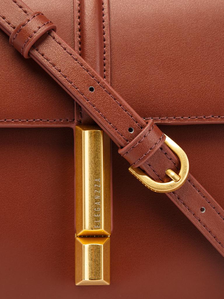 Женская сумка торговой марки Eleganzza из натуральной кожи. Модель закрывается клапаном на замок. Содержит внутри два отдела, между которыми имеется отделение на молнии, в одном отделе имеется карман на молнии. На передней стенке под клапаном есть открытый карман. На задней стенке есть карман на молнии. Высота ручки - 10 см. Максимальная длина регулируемого съемного плечевого ремня из натуральной кожи - 121 см, ширина - 1,5 см. Модель имеет ножки на дне. Не вмещает формат А4.