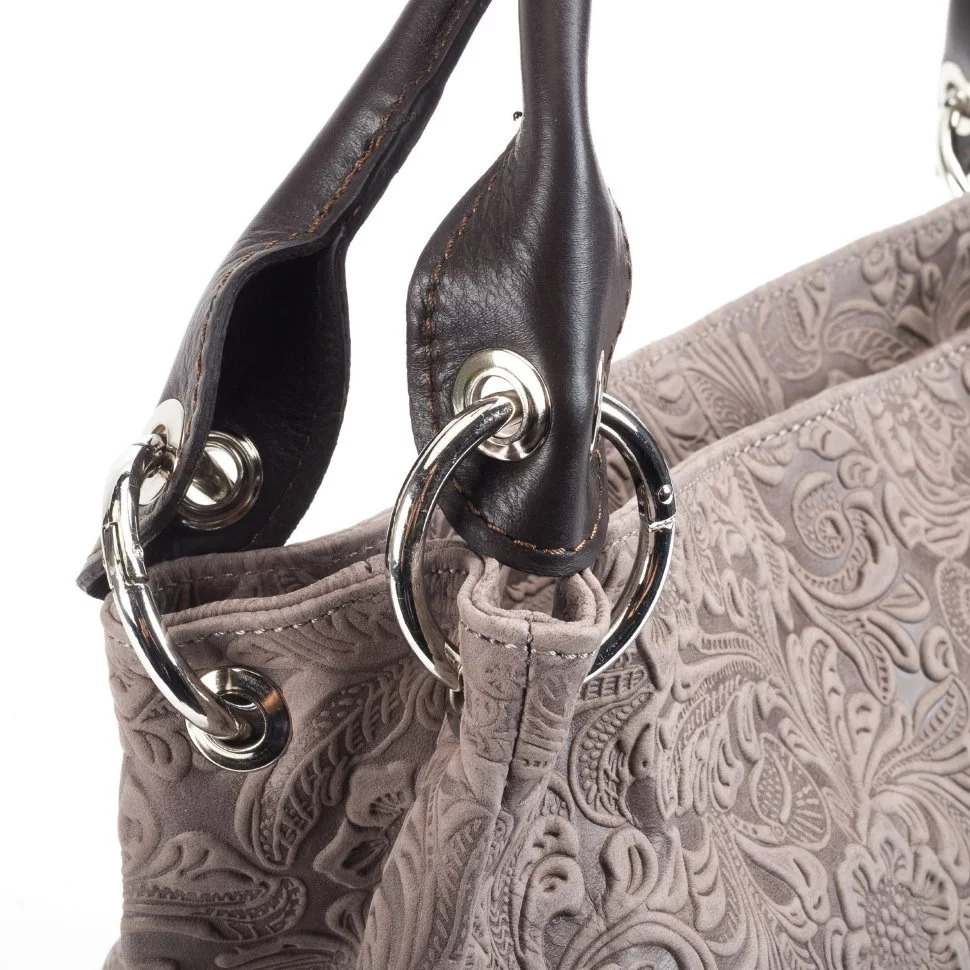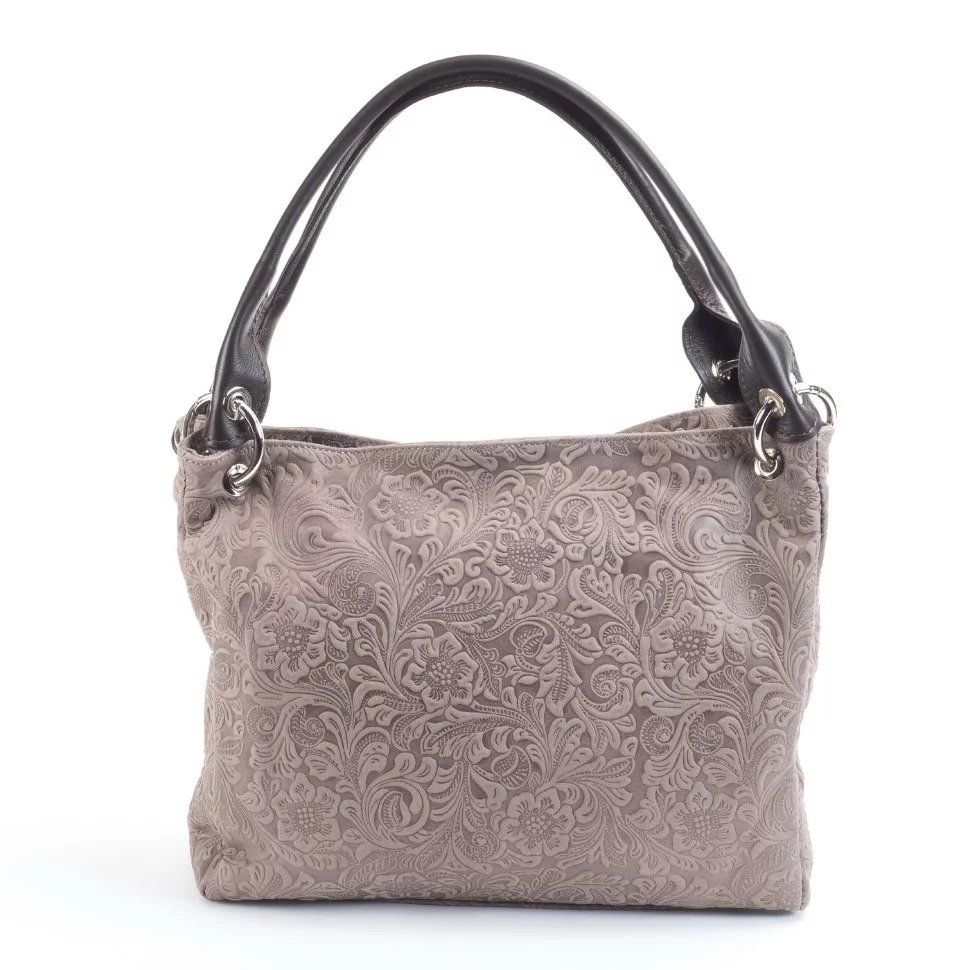 Вместительная женская сумка бренда Roberta Firenze выполнена из качественной натуральной кожи с тиснением и имеет одно большое отделение с перегородкой.
